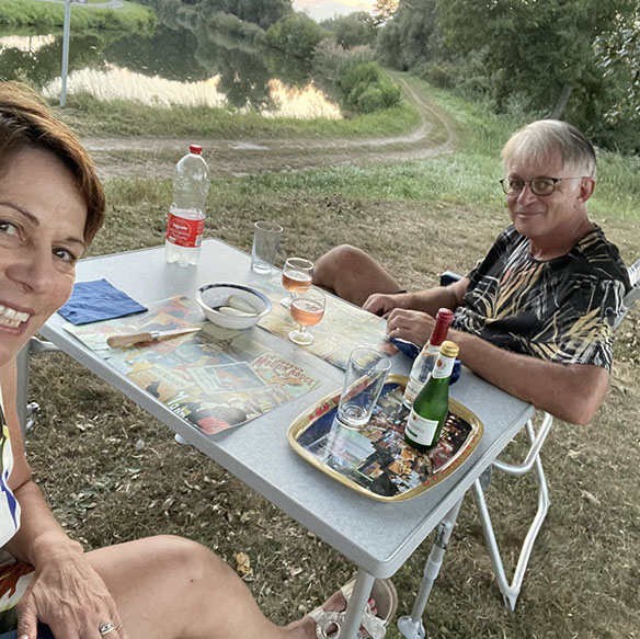Fahrt runter, heute mit wenig Verkehr und wenig Motorräder, nach Montreux Château. Auf dem kleinen Stellplatz installiert, direkt mit Blick auf dem Canal du Rhône au Rhin. Fahrradtour auf dem Eurovélo 6, das vom Atlantik bis zum Schwarzen Meer verläuft, allerdings sind wir nur bis Montbéliard gefahren, mit einem Zwischenstopp bei Bourogne. Die Stadt Montbéliard ist nicht turistisch und trotzdem ganz nett. Mittagessen im Bistrot du Commerce (gute Salate 38€), auf dem Rückweg am Hafen angehalten beim Rest´O Port und noch Eis gegessen, bevor wir nach Hause gefahren sind (50 km). Ein Glück, dass wir Strom haben, so können wir die Klimaanlage benutzen! N47º36'7" E7º0'5"