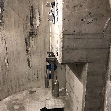 Kölnbrein Dam with the "airwalk" podest. The dam is 200 m high and 626 m long