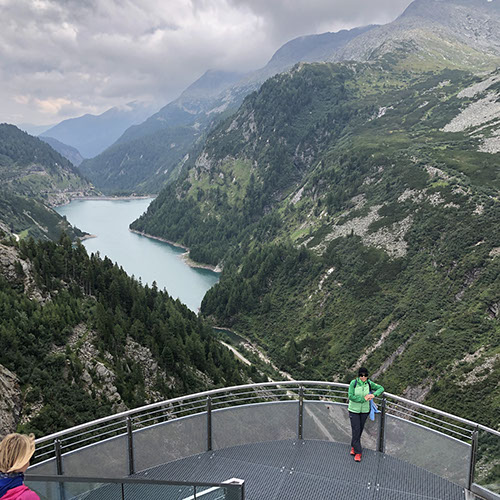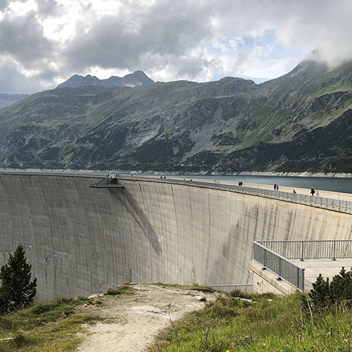 If you have no fear of height, you can walk down the "Airwalk" at the Kölnbrein dam. You can see right through the hanging ponton