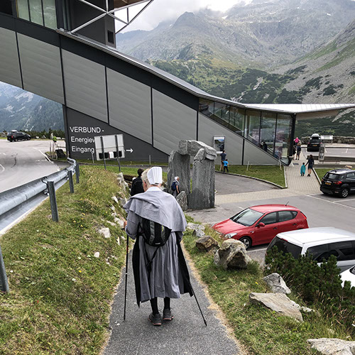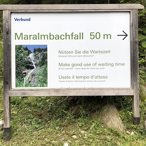 We went to a copy shop and the post office to sebd the package with the binoculars to Swarovski. Drive to Maltatal/Malta Valley with a stop at a gas station where we put 75 € (this is the minimum!) on our Go Box. At this station near Radstadt there was a small fashion outlet where Julia spent an hour and found a pair of pants. After driving through the Katschberg-Tunnel we drove into the Malta Valley (20 € per car) and settled at the Kölnbrein Stübl. Walk to the main building in the hope to get the 17:00 tour, but they only do tours until 16:00. Walk on the dam up to the "airway" and back to our camper. N47º4'56" E 13º20'28"