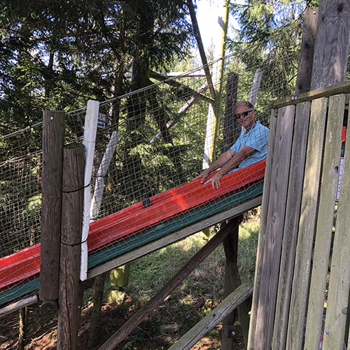 Volker gliding on the 32 m long toboggan