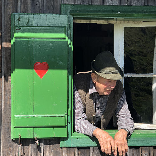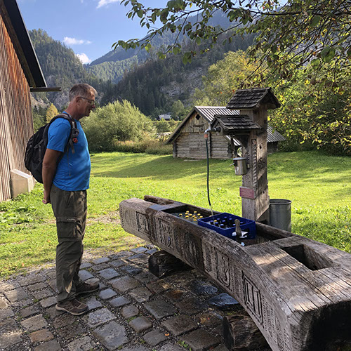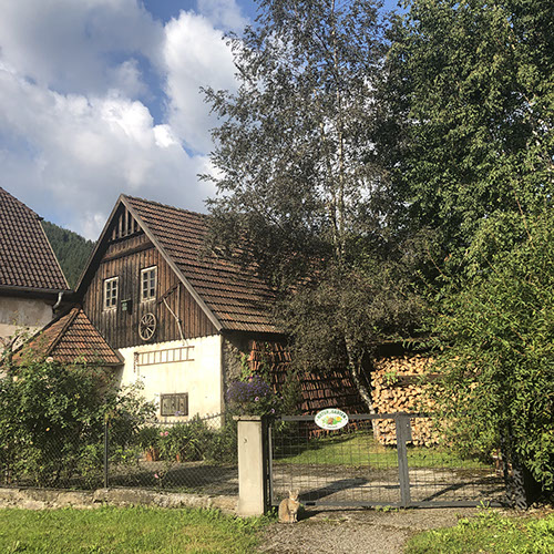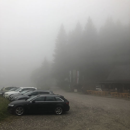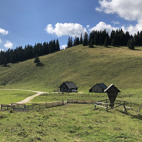 We started the day with a walk along the Weichselboden dirt road to the Barbara Chapel and further towards Höll. Back the same way (5 km, 1 hour). Drive to Niederalpl Pass where we went up to the Weißalm at 1500 m alt. We had a drink (Volker had an Almdudler: raspberry syrup with red wine and soda water, with Julias soda:3,50 €) and walked back to the pass (4,8 km, 200 m ascent, 1h50 with the pause). Drive to Kapellen where we stopped at the aire where we spent a night last year (12 € with electricity and water, but not a good sewage system). So we decided to drive further to the Preiner Gscheid where we settled for the afternoon and overnight. Unfortunately our Edelweißhütte -where we sat at the oven last year- is closed today. N47º40'34" E15º43'26"