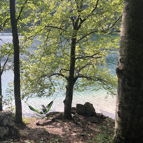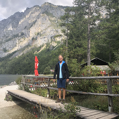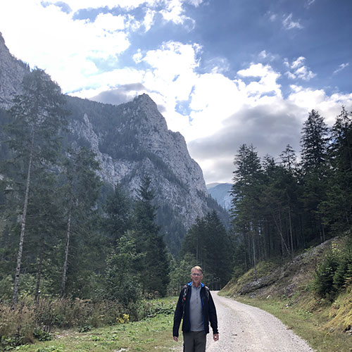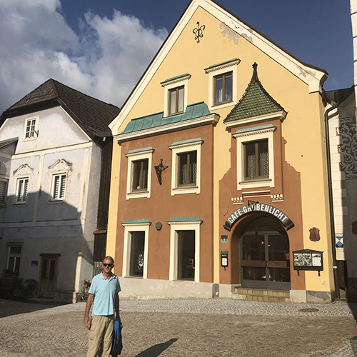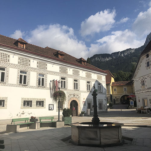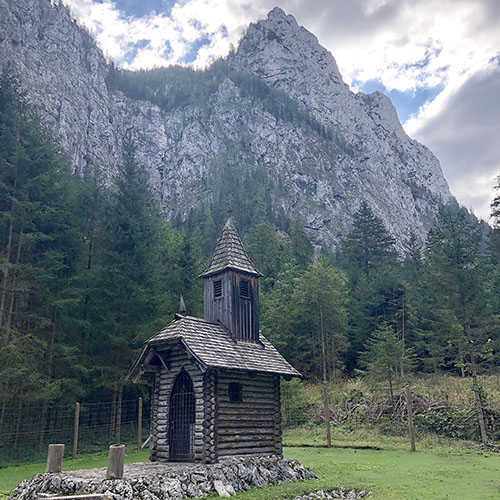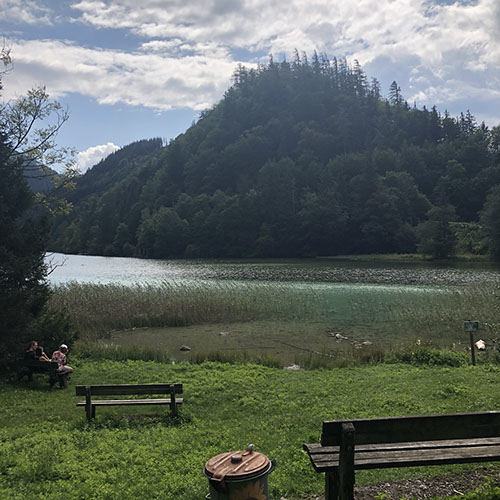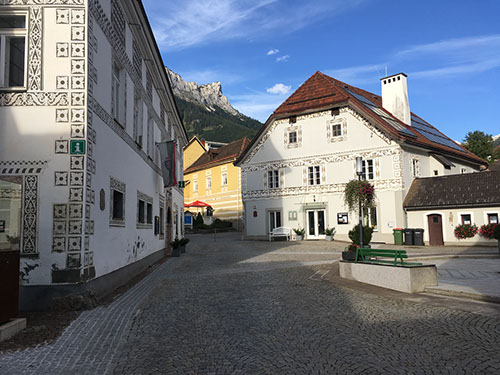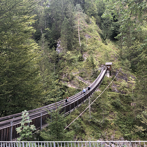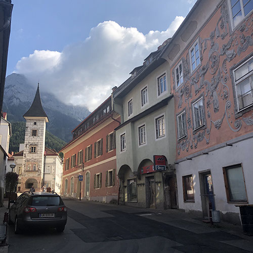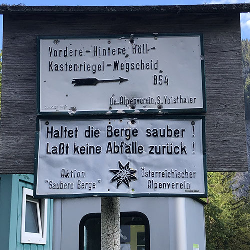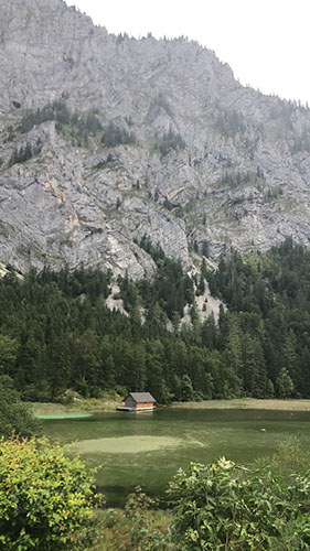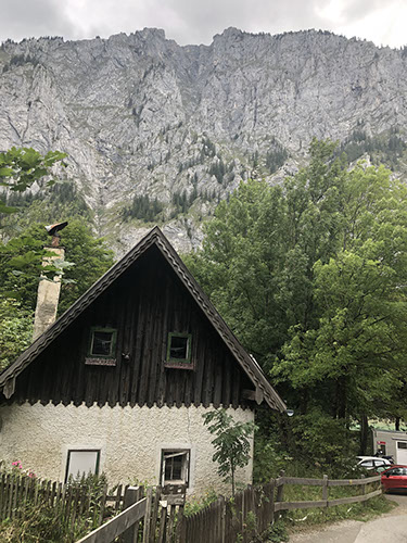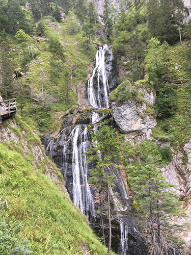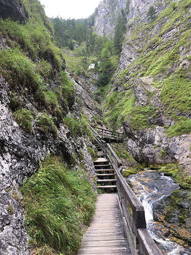 First we did a sightseeing tour, so Julia could see the nice old mining town, and, of course, we went to the sports shop and found fantastic outdoor gear! Drive to Leopoldsteinersee where we parked at the Leopoldsteinersee Stüberl Ostufer(1€/3 hours, 2€ for 10 hours). This is a beautiful mountain lake in Styria, and the lake is named after the nearby Leopoldstein Castle. The lake is many fed by underground springs. A 3 km walking trail circles the lake which we did this morning, with a short stop at the snack on the other end of the lake. There is also a shuttle boat that takes you back for the parking. We walked back along the northern trail which goes on the shore but through the forest. Drive to Wasserlochklamm (Waterhole Gorge). Breezy suspension bridge (65 m long and 21 m high) over the river Salza, numerous wooden staircases and bridges, and 5 waterfalls. Drive through the beautiful Salza valley, which is more like a huge gorge. Overnight at Weichselboden N47º40'12" N15º10'18"