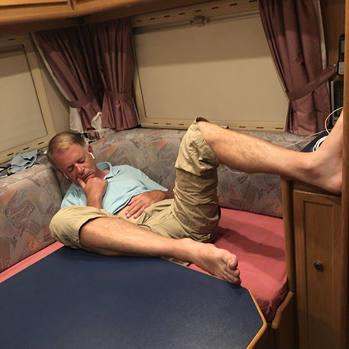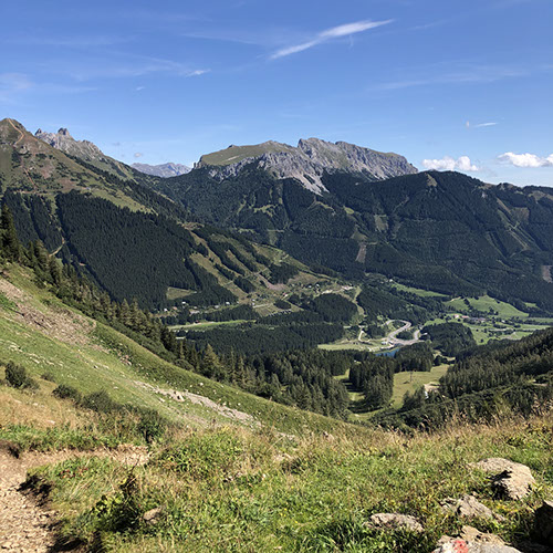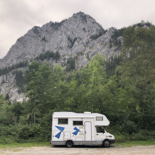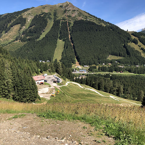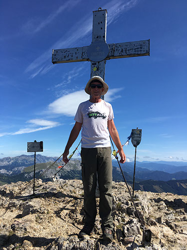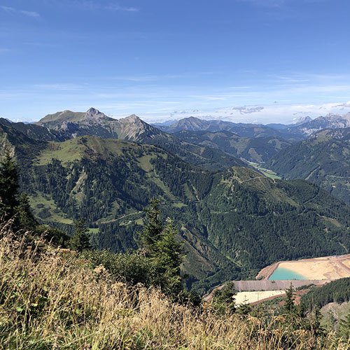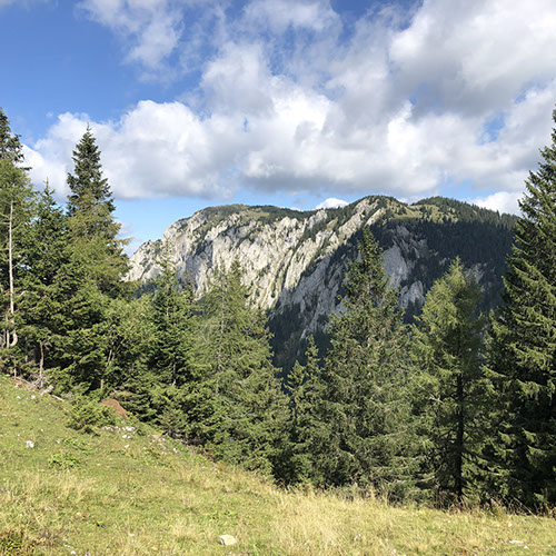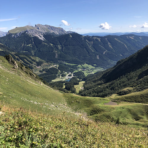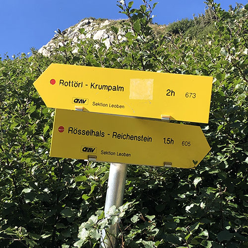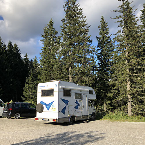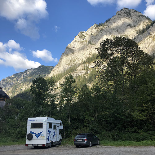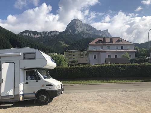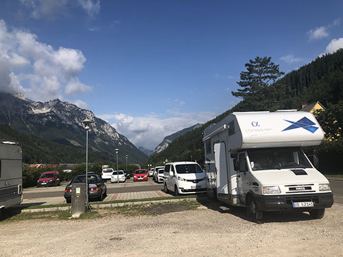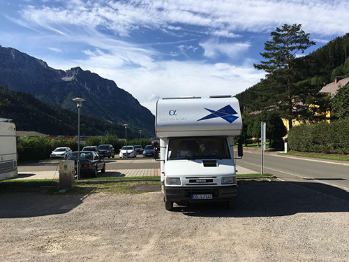 Drive to the parking of Restaurant Präblicher Hof to hike to the Eisenerzer Reichenstein. Julia got it up to Rösselhals (480 m ascent, 6,8 km) and Volker to the Reichensteinhütte (alt 2128 m, ascent 940 m, 4,5 hours, 11 km). Drive to Eisenerz where we stayed overnight at the aire at the municipal swimming pool (not so good, small and next to the road, free of charge, 1 €/8 hours electricity, no useful sewage). Volker went for a walk in the old town, tempted me on a sports shop with discounted summer stuff -where we also bought a lot of stuff on the next morning! Julia stayed home because she was not well. N47º32'36" E14º53'18"