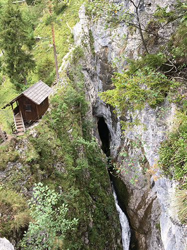 Here is the hole where the water comes out from the mountain at the Wasserlochklamm (Waterhole gorge)