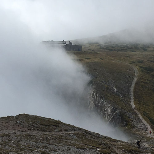 Karl-Ludwig-Haus on the Rax mountain can be seen from the trail up to Predigtstuhl (1902 m)