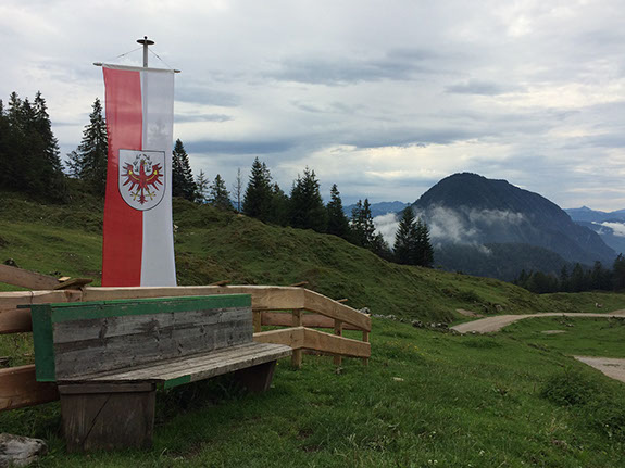 Flag announcing an open "Alm" or "Jausenstation"