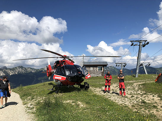 Rescue helicopter landed on a narrow space