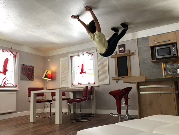 Acrobat Geraldine Philadelphia "warming up"