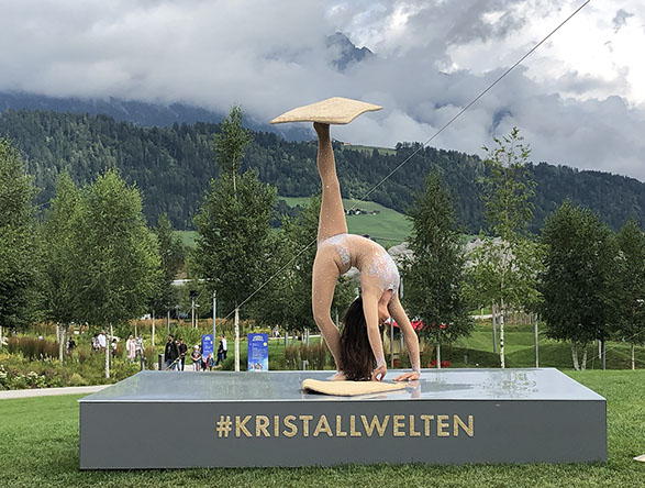 A walk to and around the Heiterwanger Lake was our first activity this morning. We were lucky to be back home before the big rain started! After lunch we drove to Innsbruck to the Swarowski Kristallwelten (Crystal Worlds 19€/pax), a special well done exhibition and a good sorted shop. We bought light binoculars 8x25 that were probably way too expensive (710€), because we were brought to the VIP Lounge, we could drink whatever we wanted and Julia got a 3-year membership free of charge + 1 entrance free. The company is well managed and comprises large grounds with different art exhibitions, special effects etc. Because it was raining we weren't able to see the whole area. Overnight at a Schwatz parking with special camper spaces (free of charge during the night). N47º20'47" E 11º42'16".