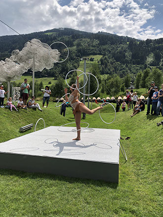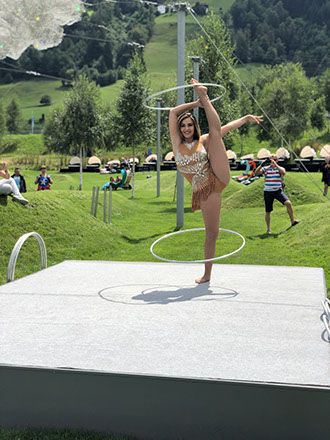 Acrobat and hula hoop expert Geraldine Philadelphia