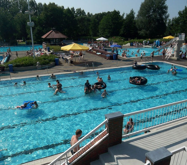 Bad Zwischenahn: das Freibad. Es war nicht so voll wie auf diesem Bild. Ich bin 1 km geschwommen im Olympischen Becken hinten links