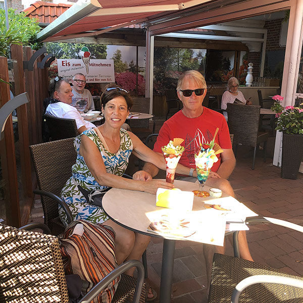 Morgens bemerkten wir, dass unser Kühlschrank nicht richtig kühlt, so sind wir zu einem Dometic-Service-Wohnmobil-Reparatur-Laden ReWo gefahren. Da wurden wir sehr nett von dem Chef empfangen. Er hat versucht, den Brenner zu überprüfen, sagte aber, dass wir vielleicht ein ganz neuen Kühlschrank bzw. Platine brauchen; allerdings sind die Lieferungen zurzeit unberechenbar. Wir sind nach Bad Zwischenahn gefahren (Ammerland/Niedersachsen), und haben uns auf dem Stellplatz Badeplatz (14€ pro Nacht + ca. 2€ Strom, inkl. Gästekarte). Mittagessen im Resto Hof von Oldenburg (40€). Spaziergang entlang des Ufers des Zwischenahner Meers, Julia Shopping gemacht und ich habe Volker nach Hause geschickt. Kurz nach 18 Uhr haben wir bei dem Eisladen San Remo ganz tolles Eis gegessen (16€). Um 18 Uhr schließen alle Geschäfte hier auch. N53º11'14" E8º0'2"