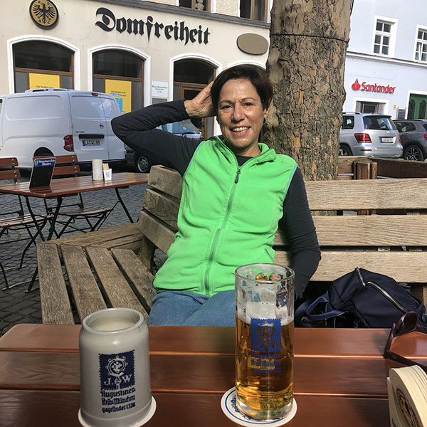 Volker ist mit dem Zug nach Landau a.d.Isar gefahren (18 € inkl. 6€ Fahrrad) um von dort nach Landhut auf dem Isar Fahrradweg zurückzufahren (52 km, starker Gegendwind). Julia mit dem Fahrrad bis zum Camping-Platz, um 14 Uhr Friseur bei Julia Kaindl (77€). Danach nach Freising zum Parkplatz hinter dem Bahnhof gefahren. Zu Fuß zur Brauerei Weihenstephan, wo wir eine 1/2 Schweinshaxe gegessen haben. Und natürlich auch Bier getrunken, u.a. das Korbinian-Schwarz-Bier. Auf dem Weg hin und zurück von der Brauerei Eis gegessen. N48º23'50" E11º44'58"