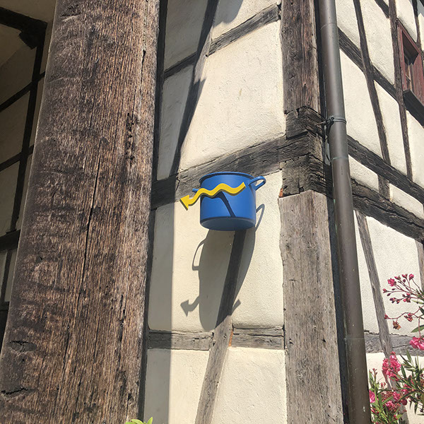 Die Gießkanne ist praktisch um Wasser von der Aach zu entnehmen