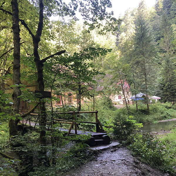 Gutachschlucht-Wanderung: Wanderheim Burgmühle im Hintergrund (leider am Montag geschlossen)