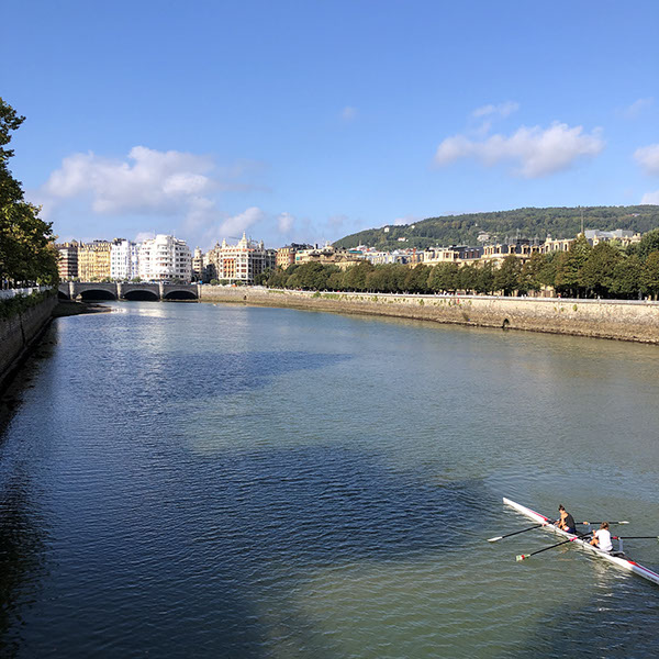 Einkauf bei LeClerc in Dax in Centre Commercial Grand Mail Adour Océane. Fahrt nach San Sebastian, wo wir uns auf dem Stellplatz von der Stadt installiert haben (6,70€/Nacht bis zum nächsten Tag 23:59 Uhr 2 Pax). Mit den Fahrrädern an den Strand de la Concha beim Jardín Ondarreta gefahren, in dem warmen ruhigen Wasser der Meeresbucht (ca. 24ºC!) gebadet. Dann mit den Fahrrädern weiter entlang dem Paseo de la Concha bei LaPerla eine leckere Sangria getrunken, mit grünen Oliven (12,10€). Danach weiter zur Neustadt, zur Info und neue Folienplatzierung auf mein iPhoneX nebenan (8,90€). Dort Fahrräder gelassen und zu Fuß die "Neustadt" ein wenig erkundet bis zum Paseo del Árbol de Gernika (Brücke) am Fluss Urumea. Zurück zum Wohni und nach einer guten Dusche in die Stadt mit dem Bus 44 (185€/pax) und 4 Tapas-Bars gemacht: 1. Antonio Bar, 2. Zumeltzegi, 3. Mesón Martin (toller Sidra getrunken!), 4. La Cepa, und dann noch einen nicht so guten Sidra bei einer Sidredria getrunken (dafür aber nur 2€) gekostet für beide). Julia noch ein Eis bei Piccola Venezia gegessen um 22:30 Uhr! Mit Bus 25 zurück nach Hause (1,85€/pax).