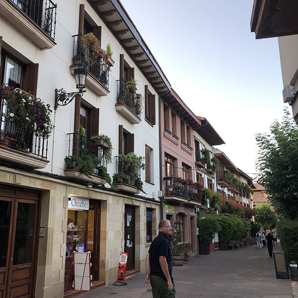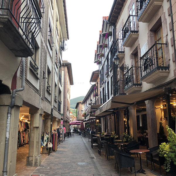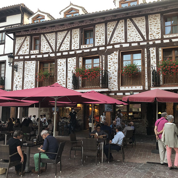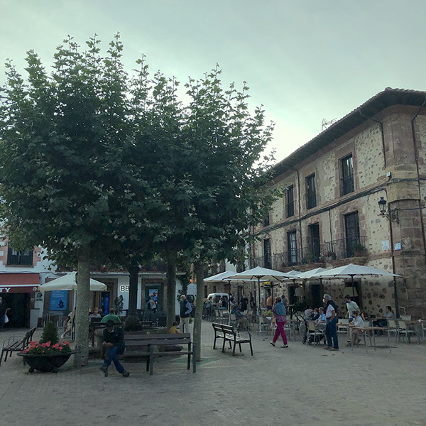 Fahrt nach Dax, wo wir noch gut bei Mercadona Schinken gekauft haben. Danach Fahrt nach Logroño, wo wir am großen schattigen Parkplatz bei dem Schwimmbad geparkt haben. Zu Fuß in die Innenstadt, zur Info und dann Mittagessen im ersten Restaurant "El Comienzo" (sehr gut, nur 30€ mit allem: Couvert, Vorspeise, Hauptspeise, Nachspeise, großes Mineralwasser, 1 flasche Rotwein!). Danach noch einen Kaffee in der Calle Portales (2,50€), Julia einen Llaollao-Eis, dann zum Wohni. Man muss ja in Spanien überall Maske tragen, also auch auf der Straße, wenn man spaziert. Besuch des Geschäfts des ältesten Weinguts in Logroño: Franco Español, aber nichts gekauft. Wir entschieden uns dann nach Westen zu fahren, nach Ezcaray, um morgen eine Fahrradtour auf der Via Verde Ezcaray-Haro zu machen. Obwohl wir erst keine Lust mehr hatten wegen der Hitze, sind wir doch noch mit unseren Fahrrädern in die Altstadt gefahren, die wirklich sehr nett ist. Bei der Bar Satorre haben wir einen Getränk eingenommen, sind noch zu Fuß ein wenig durch die sympatische Kleinstadt (nur 2.000 Einwohner) mit vielen Bars und Restaurants gelaufen, bevor wir um 20 Uhr nach Hause gefahren sind. N42º19'39" E3º0'34"