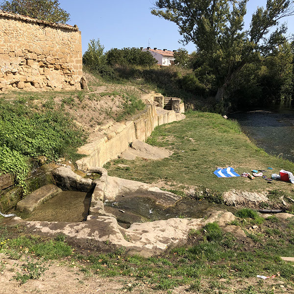 Fahrradtour Via Verde del Oja und Ruta del Oja-Tirón von Ezcaray bis Haro (42 km, ca. -350 Höhenmeter, easy, 3 Stunden mit Stopps). Das Teil von Santo Domingo de la Calzada bis Haro war das Interessanteste Teil. Vormittags hatten wir beim Camping Haro einen Platz reserviert. Als wir mit den Fahrrädern da ankamen, stand "Platz voll". Wir haben allerdings trotzdem unser Platz auf eine Wiese bekommen (32,20€/Nacht ohne Strom, gute Entsorgungsmöglichkeit). Die Campingplätze dürfen nur zu 80% voll sein! Volker hat ein Taxi zurück nach Ezcaray genommen, während ich mit Conny einen Stadtrundgang gemacht habe und für das Linner/Almojantar eingekauft habe. Abends sind wir noch zu Fuß hoch in die Altstadt gelaufen und haben in zwei Tapas-Bars (eine am Zócalo "Restaurante Obarenes und und eine an einer Nebengasse) Tinto de Verano und Pimientos de Padrón eingenommen. N42º34'40" E2º51'24"
