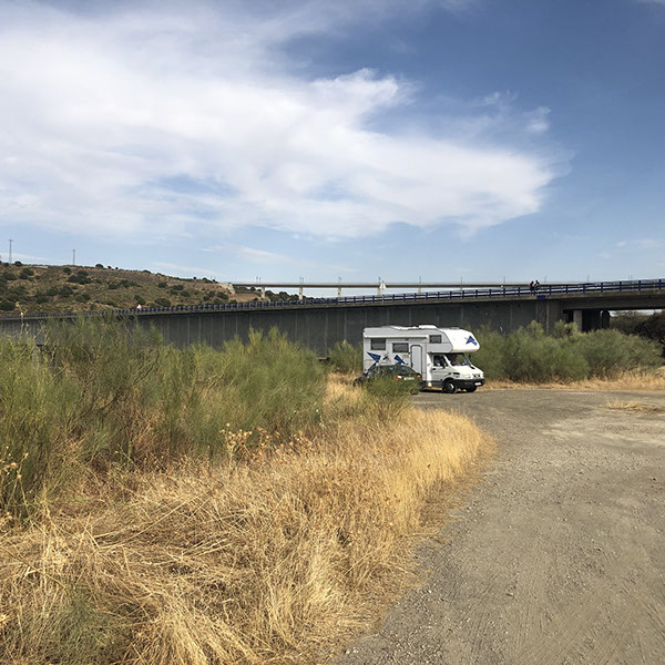 Unser Stellplatz am Staudamm bei Cáceres