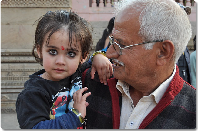 Departure at 8:30am. Stop in front of the Wind Palace where we enjoyed the performance of a snake charmer. Next was our elephant ride up to the "Amber Fort" (tip Rs 50 pax). On our way up to get to the actually platform for "boarding" the elephants, there were many street vendors harassing us all. There was an elephant caravan taking all people up to the fort. Visit of the fort with a guide who also showed the famous (Belgian) mirror palace. Jeeps took us down to the parking place. The photographers were extremely aggressive with their trying to sell us pictures they had taken while we were riding the elephants. Back to our bus, we made a stop to view the Water Palace. On the way to our restaurant for lunch we got stuck for almost one hour in a traffic jam because of some Muslim celebration, loads of people blocked the road. Lunch at the Green Pigeon (ok food). Then we had to go to the Arts & Crafts Cooperative where Françoise and Raymond found a beautiful blue carpet. Drive to old city center where we visited a well-known seller for spice and pickles. Coffee (virgin classic Mojito for Alice) at a nice tea-room. We also did boutique shopping without buying anything. Very busy downtown. Back at the hotel we changed clothes and went to the dinner of the past governor of Pink City Jaipur University Rotary Club. Drive to Jaipur railway station where we to carry our luggage up and down stairs. At 11:10 pm our train took off towards our next destination Haridwar.