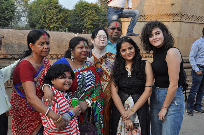The 6 hour drive was done with the bus... The landscape between Delhi and Agra is mostly fields with plantation and some space for children to play rugby. Our stay is at Man Singh Palace where the Rotary Conference is held: Anad Utsav: 1st Rotary Conference of District 3054. Lunch outside in the garden, very nice. Fernanda, Ines, Julia, Sanskriti and Atal took a OLA (similar to Uber, but you pay cash) went to local stores, then to the Mehtab Bagh park, one of the best places from which you can view the Taj Mahal from a quiet place across the river. In the evening dinner outside with a show with Indian singers, dances at which Dyvia took part and a presentation of Bhanu and his wife like on a catwalk. Ines & Gil, Melanie & Mike and Julia had a drink at the Bar of the hotel before going to bed.