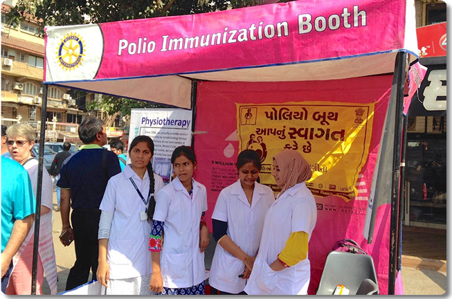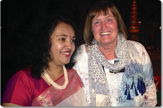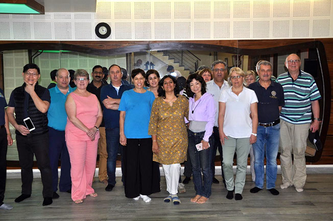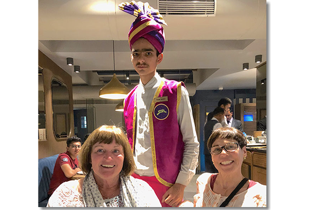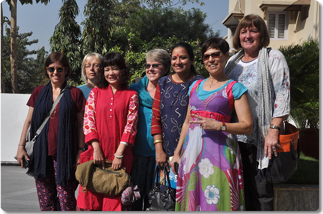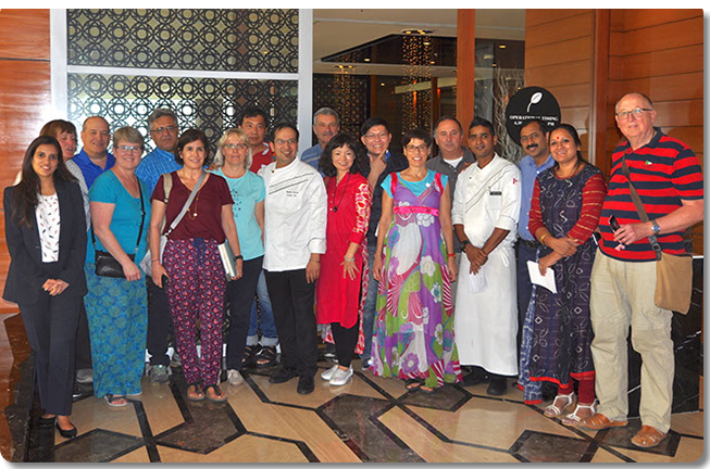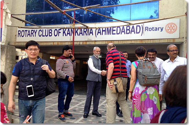 What a pleasure to be able to sleep longer. At 10:30 we left for the Marriott Hotel for our cooking class with Chef Azuruddha Liwaye -great! He showed us how to cook Dal Tadka, Kadai Paneer, Shaki Tudka and Chapati. Lunch at the restaurant on a superb buffett with lots of delicious Indian and international food. Directly afterwards we drove to the Rotary Club of Kankaria in Ahmedabad to see their Vedic Apparel Training Center. About 20 women learn how to sow with sewing machines, very impressive. They also have a programme to do Yog(a) classes. After presenting all their projects, we all got a rose and ice-cream. Drive to the Rotary Physiotherapy Center. Back home most of us went to the dinner with DG, PDG at ethnic restaurant Rajwadu. Françoise, Gil and Julia stayed at the hotel. Françoise and Julia had a snack at the lovely terrace of the Sphere Lounge on the 11th floor.