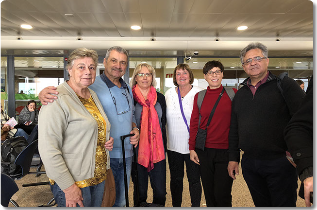 At 7:30 we took off in various OLA cars (400 rupees). It took us 3/4 hour to reach the airport. Flight from Delhi to Dubai. Our superb hotel back to civilisation "Dubai International Terminal Hotel near gate B22" with a massage chair, fantastic! Julia couldn't get Alice off this device, she was in trance! At 3:30 pm we did a sightseeing tour with Emirates Adventure (406 US$, i.e. 52 Euros each). We had a very nice driver/guide who took us all 7 in a comfortable van to the most important sites in New Dubai: what a density of high rises with the most majestic architecture. Especially the Burj Khalifa, the highest high rise of the world with its 828 m height was awesome, in the evening at 7pm with a majestic color show. We also saw the Dubai frame, an artificial island Palm Jumeirah with its nice hotels and houses with their own jetty, then the Marina Jumeirah, the Dubai Fountain at night. Back at the hotel through imigration and security, dinner at the snack buffet of our hotel with lovely mojitos.