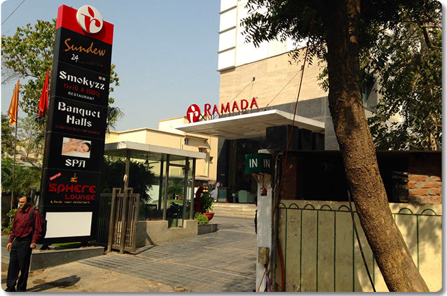 Flight 1908 FAO-LIS 11:15-12:00, then EK 192 LIS-DXB (Dubai) 13:35-01:15 (+1), flight EK540 4:00-8:05 arrival in Ahmedabad. Lounge in Faro with Alice. Alice and Julia had some difficulties getting their boarding passes for the flights from Lisbon to Dubai and Ahmedabad. Julia went alone to the lounge Marhaba in Dubai (lots of good food!). We got our luggage pretty fast, but then it took some time with the immigration. They took the finger imprints of some of our group, pictures ware taken from all and a stamp was put into our passports. Bahnu and assistants were waiting for us, with 3 cars we all drove to the Hotel Ramada (Opp. Prahladnagar Garden/S.G. Highway, www.ramadaahmedabad.com). The check-in procedure took a long time. Reception is compelled to make copies from our passport, take pictures of each of us, and have contact data filled in. So we actually were able to go to our room at 11:30. Room is nice, we are all on the 7th floor. We all went to our room, some got instantly to sleep, others opened their suitcases and try to get the room clear. At 14:30 Julia called Alice -who was profoundly sleepting- and encouraged her to come and walk around the area of our hotel. Walking some streets, which have lots of nice trees, we could see the