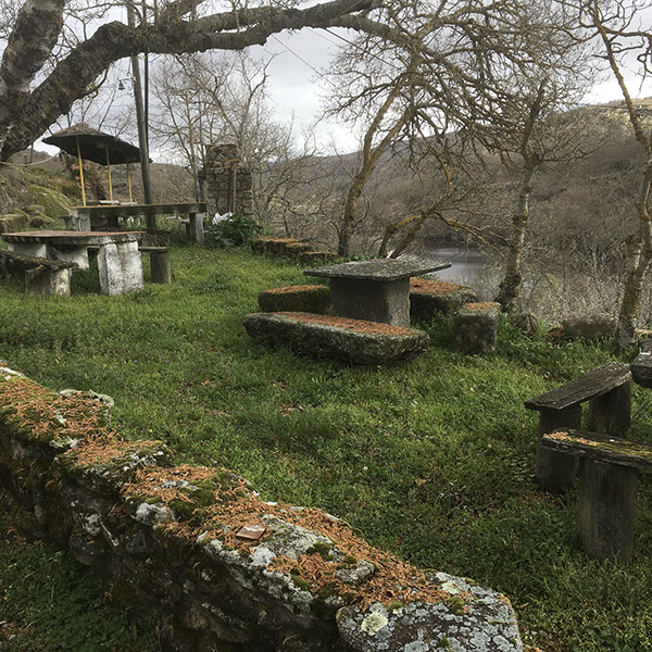 Fahrt nach Cidadelhe, wo wir das Wohni bei der alten Freguesia geparkt haben. Heute ist Julia mitgelaufen: 13 km, 3h50', 350 Altnmeter. In Algodres ins Café O Escondidinho eine Imperial und Café getrunken. Der Wirt konnte uns kein Taxi finden. Da hat sich einen Gast von sich aus angeboten, uns zurück nach Cidadelhe zu fahren (er ist kein Taxifahrer!). Daraufhin sind wir zu seinem Haus gegangen, und haben gesehen, wie er Mandeln verarbeitet (z.B. zu Mandelbutter, die wir dann auch gekauft haben), Olivenöl, seine Piscina bewundert, weil er sie mit "Siebfolie" abgedeckt hat. Der nette Herr heißt João und hat ein gepflegtes Haus. Wir haben ihm 20€ für die Fahrt nach Cidadelhe gegeben. Fahrt Richtung Algodres und geparkt, gegrillt und übernachtet gegenüber den Südeingang von Reserva Faia Brava (sehr schön, sehr ruhig). N40º54'20" W7º5'45"