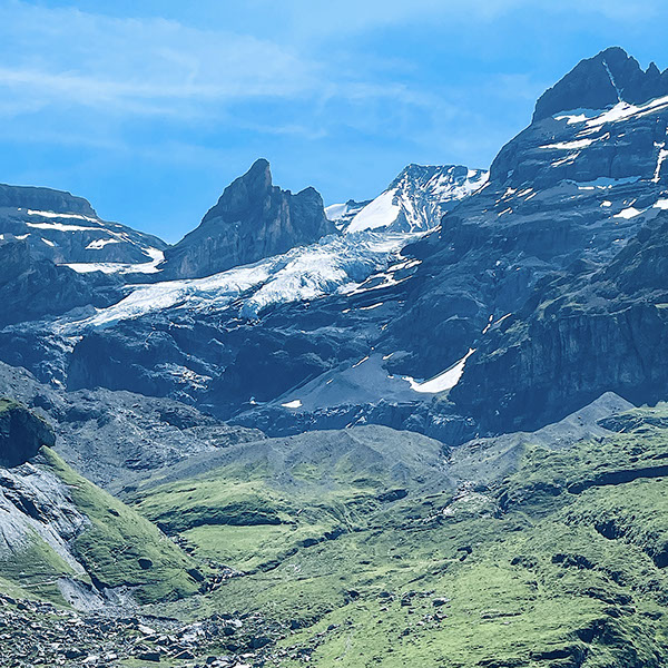 Mit der Oeschinen-Gondelbahn hoch (15 CHF/pax Halftax) dann zu Fuß bis zum Oeschinensee, und Wanderung Heuberg-Ober Bärgli" sind wir bis auf 2000 Meter hochgelaufen. dann wieder runter bis Kandersteg (420 Hm hoch, 850 Hm runter, 6 Stunden mit mehreren Pausen bei den Bergbeizlis). Tolle Wanderung durch diese Gletscher und Seelandschaft. Zurück zuhause erstmal ein Gin-Tonic und Grillabend.