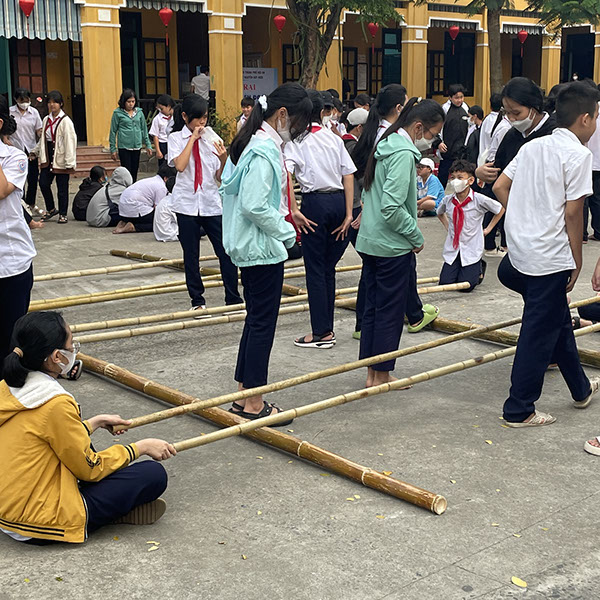 Hoi An: Der Bambustanz wird in der Schule praktiziert!