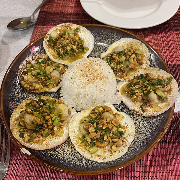 Endlich Abendessen zwischen allen Anproben: Jakobsmuscheln
