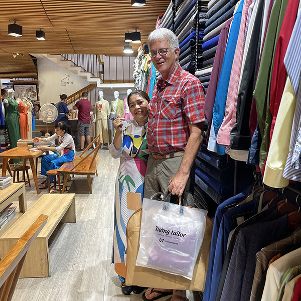 Heute lässt sich Volker lauter Sachen schneidern: Einen Anzug, 4 Hemde. Noch ein Hemd gegenüber von unserem Hotel, wo Julia sich zwei Kleider hat schneidern lassen. Heute hatten wir wirklich Tailor-Stress! Mehrmals hin und her mit Grab (ca. 90 VDN pro Fahrt) in die Altstadt zur Anprobe und Abholung, die letzte war um 21:30 Uhr bei uns gegenüber vom Hotel! Danach noch ein Bier und dann ins Bett.
