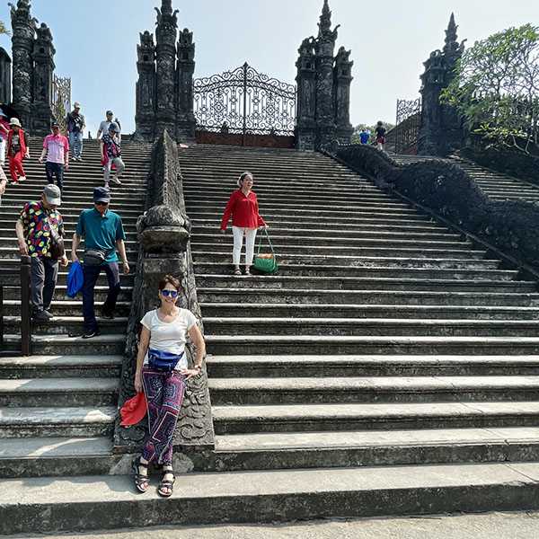 Abfahrt um 9 Uhr. Besichtigung des Kaisergrabes von Khai Dinh. Danach zu dem Lagoon Lang Co Bay. Hochgefahren zum Wolkenpass bzw. Hai Van Pass auf 496 m, wo ein französisches Fort ist und einige Bunker vom Vietnam Krieg. Klimascheide Zentral-Veitnams bei 496 m.
