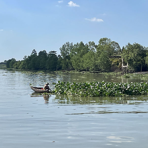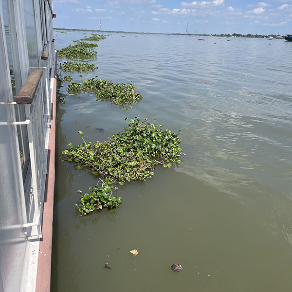 Viel "Gemüse" schwimmt auf dem Mekong: Es handel sich um Wasserhyazinthen, die aus Brasilien importiert wurde.