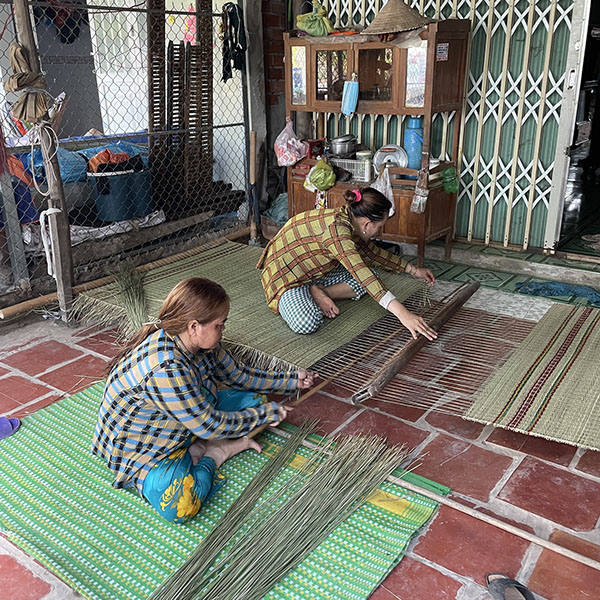 Auf der Insel Binh Thanh. Matten werden von Hand gewebt. Diese werden benutzt z.B. um Tote einzuwickeln, oder als normale Matte, halten aber nur etwa 6 Monate. Kosten allerdings nur 1 US$/Stück