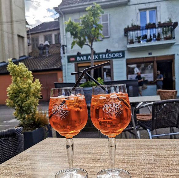 Munster: noch ein Absacker draußen am Bar aux Trésors