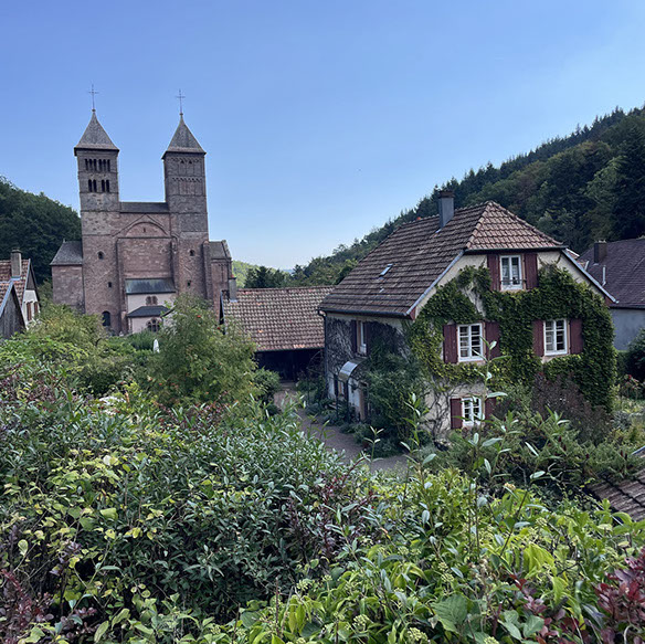 Fahrt nach Guebwiller um Getränke einzukaufen (bei Lidl), dann weiter nach Murbach, wo wir eine kleine Runde gedreht haben, die ehemalige Abtei, die ein wenig renovierungsbedürftige Häuser gesehen und anschließend das Restaurant Auberge de l´Abbaye besucht und sehr gut da gegessen. Endlich konnte Volker die Choucroute garnie essen und ich einen üppigen Salat gefolgt von einem Pampelmouse/Rabharber/Erdbeer-Sorbet-Eisbecher (53€). Kurz durch den mittelalterlichen Garten durch, bevor wir dann weitergefahren sind und versucht haben, bei der Station du Markstein zu parken, aber das war alles andere als idyllisch, voll und laut. So dass wir auf einen schönen kleinen Parkplatz gegenüber des Monuments der Schlittenhunde geparkt haben und dort auch geblieben sind. Hier ist es auch endlich frisch! Wir stehen gegenüber dem Monument zu den kanadischen und alaskischen Schlittenhunden, die im ersten Weltkrieg die die französichen Truppen mit dem Nachschube versorgt haben: www.poilusdalaska.com. N47º56'53" E7º1'42"