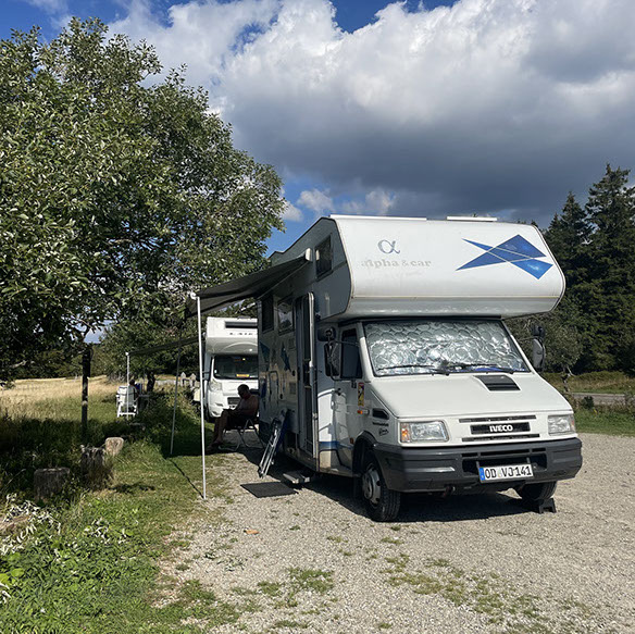 D27: unser Stellplatz in der Nähe vom Markstein. Endlich mehr Ruhe und Kühle