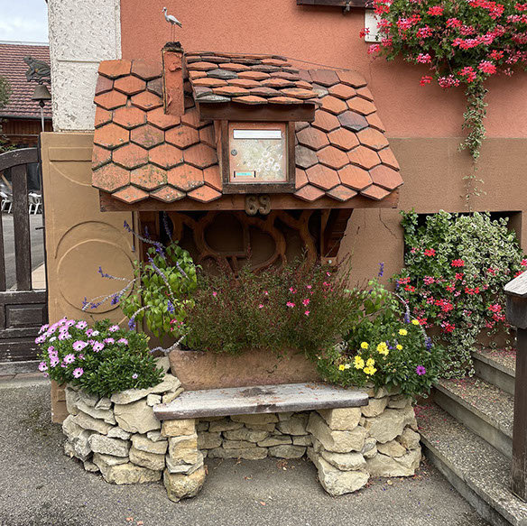 Hirtzbach: ein hübscher Briefkasten und Platz für den Briefträger zum Ausruhen