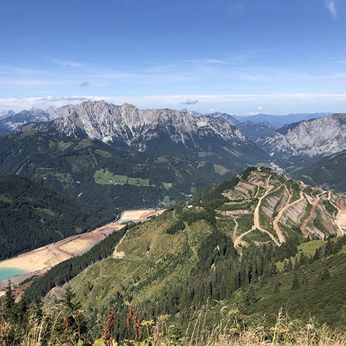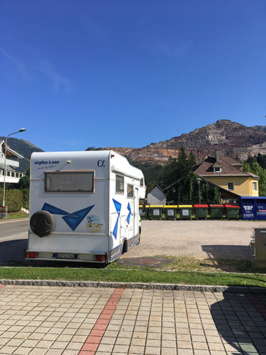 Drive to the parking of Restaurant Präblicher Hof to hike to the Eisenerzer Reichenstein. Julia got it up to Rösselhals (480 m ascent, 6,8 km) and Volker to the Reichensteinhütte (alt 2128 m, ascent 940 m, 4,5 hours, 11 km). Drive to Eisenerz where we stayed overnight at the aire at the municipal swimming pool (not so good, small and next to the road, free of charge, 1 €/8 hours electricity, no useful sewage). Volker went for a walk in the old town, tempted me on a sports shop with discounted summer stuff -where we also bought a lot of stuff on the next morning! Julia stayed home because she was not well. N47º32'36" E14º53'18"