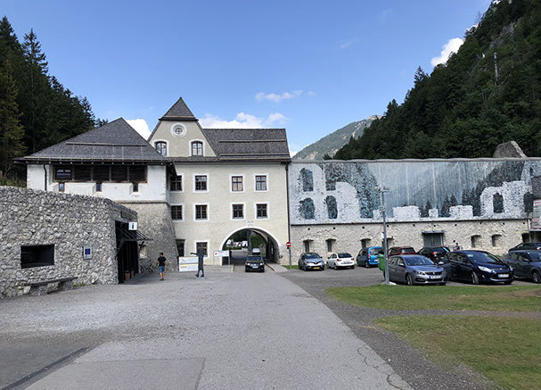 A walk to and around the Heiterwanger Lake was our first activity this morning. We were lucky to be back home before the big rain started! After lunch we drove to Innsbruck to the Swarowski Kristallwelten (Crystal Worlds 19€/pax), a special well done exhibition and a good sorted shop. We bought light binoculars 8x25 that were probably way too expensive (710€), because we were brought to the VIP Lounge, we could drink whatever we wanted and Julia got a 3-year membership free of charge + 1 entrance free. The company is well managed and comprises large grounds with different art exhibitions, special effects etc. Because it was raining we weren't able to see the whole area. Overnight at a Schwatz parking with special camper spaces (free of charge during the night). N47º20'47" E 11º42'16".