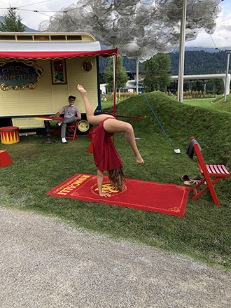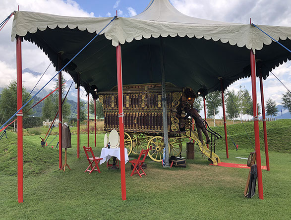 Thomas the magician in front of the 150 old authentic circus trailer - Summer in the Giant by Swarovski