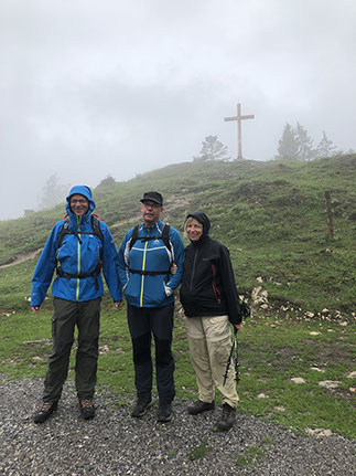 Drive to Ledererwirt where we met Elke and Rudi. We drove to the Restaurant Schöne Aussicht and walked up to the Burger Alm where we had a light lunch, then at Wandberghütte where we had Kaiserschmarrn. Over the Karspitze (or almost) we walked down (10,9 km, 6 hours, 560 m ascent). Back home we had a drink before taking a shower and having an excellent dinner. N47º38º26" E12º15'21"