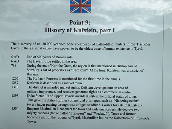 Breakfast at the hotel. We drove to Kufstein to the Kaiser lift. It is just a one person sitting cable car and it's very loooong! It was raining and we were completely wet when we arrived on top of the second cable car. First thing we went to the Weinbergerhaus Alm and had a hot coffee -very good. Julia decided to go back down whereas all other three went to the Kaindlhütte. Then Walla-Alm and then back to Kufstein. In the meantime Julia went to the sports shop Hervis and warmed herself, bought a pair of socks then went to have lunch. The weather got better and Julia went to visit the fort Festung Kufstein (normally 12€/pax but with the guest card free of charge). Then Julia went back to the parking lot where we had parked and 10 minutes later we were all together.