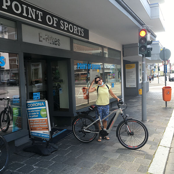 Fahrt nach Hofheim und Worms zum Fahrradladen Point of Sports, wo Julia 2 E-Bikes ausprobiert hat. Entschieden wurde für ein schönes M-Rahmen Conway Fahrrad, dass dann für den nächsten Tag vorbereitet wurde. Richtig entscheiden können wir uns erst, wenn wir sicher sind, dass es in der Garage des Wohnis passt. Mittagessen bei Kolbs Biergarten in Worms (ausgezeichnet, sehr nett und man sitzt schçne 20,40€ + Getränke, die wir wegen Corona an der Theke abholen mussten. Wir saßen mit einem netten Ehepaar aus Worms. Zurück nach Nordheim.