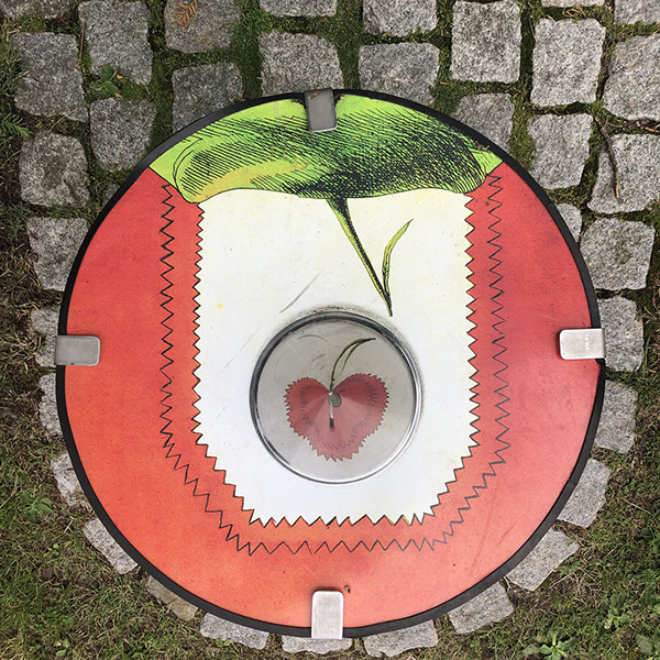 Kunst der Illusion: die Anamorphose: Die nichtsbedeutende Zeichnung auf der flachen Scheibe ergibt ein "verständliches" Bild mittels des konischen Spiegels!