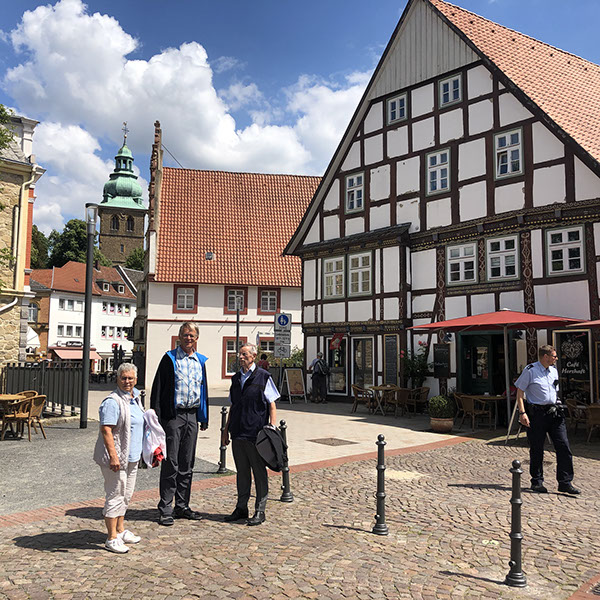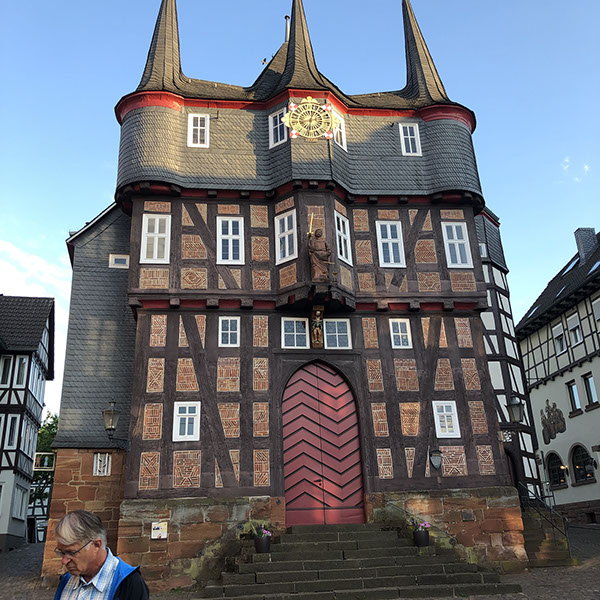 Nach einem reichhaltigen Frühstück sind wir in Heidis Wagen nach Porta Westfalica gefahren und haben das Kaiser-Wilhelm-Denkmal besichtigt. Leider war das Museum geschlossen (Montag geschlossen). Dann nach Bad Salzuflen gefahren, wo wir sehr lecker zu Mittag gegessen haben im Restaurant " ", dann Eis gegessen im neuen Eiscafé. Sehr beeindruckend die geschmückten Fachwerkhäuser in Bad Salzuflen, auch die Gradierwerke! Nachdem wir zurück waren und einen Kaffee getrunken haben, sind wir nach Frankenberg/Eder gefahren. Stellplatz Eder-Berglandhalle hinter dem Steak-Restaurant (sah gut aus, da haben wir aber nicht gegessen). Spaziergang hoch zur Altstadt mit vielen Fachwerkhäusern und das tolle Alte Rathaus, dann zur Neustadt. N51º3'19" E8º48'2"