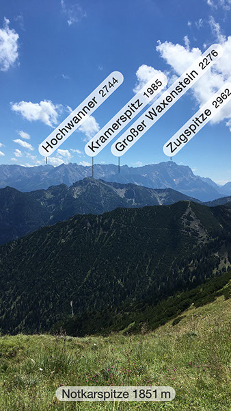 Unser Blick hoch zur Alpspitz und rechts auf die Zugspitze